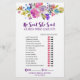 Dieses lila und rosa Blume-Spiel "sagte er sagte sie sagte" ist perfekt für ein Blumenthema-Brautparty. Auf der Vorderseite der Spielkarte steht "er sagte, sie sagte", was ein lustiges Quiz über Braut und Bräutigam ist. Auf der Rückseite der Karte finden Sie ein Wort mit Wörtern und Phrasen, die mit Hochzeiten zusammenhängen. Das Design besticht durch helle Magenta, rosa, lila und blaue Blumen und einen hübschen Schriftart mit kühnen Schriften. Personalisieren Sie die Spielkarte mit dem Namen und dem Datum des Brautparty der Braut. Bitte kontaktieren Sie mich mit beliebigen Designanpassungen, die Sie benötigen. Entworfen mit Pflege von Miriam bei Fresh & Yummy Paperie. Für die Koordination der Artikel besuchen Sie bitte meinen Zazzle-Laden:
