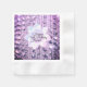 Perlen in verschiedenen Farbtönen von lila Lavendel und Rosa beleuchten eine Lavendelkulisse, in der sich in der Mitte eine Lotus-Blume aus weichem Rosa und lila Pastelln befindet, wo Sie Ihre Veranstaltung personalisieren können. Eine elegante gläserne Touch für jede Feier.