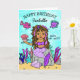 Dieses niedliche ispanische oder afroamerikanische braune Haar mit lila Highlights in der Haar Meerjungfrau-Karte wurde von mir selbst gezeichnet und zeigt eine hübsche blonde Meerjungfrau mit ihren Freinds, den Oktopus, Fisch, Seestern und Korallen. Die Innenseite der Karte hat eine Bonusseite, damit das Geburtstagsmädchen die Farbe hat! Hoffe, dass es dir gefällt und danke für das Aussehen! Alle meine Cartoon-Zeichnungen wurden von meinen kleinen Enkelkindern inspiriert.