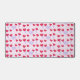 Lila und rote Herzmuster auf rosafarbenem Hintergrund.