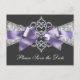 Hübsche Diamanten und verbeugen sich lila und schwarz Save the Date Postkarten. Sie können Ihre Daten in den Vordergrund und hinten in den Schriftart Stil, Farbe und Wortlaut Ihrer Wahl. Sie können die Briefmarke- und Poststellplatzierungsmarker löschen, wenn Sie sie nicht auf Ihren Postkarten gewollt haben.