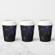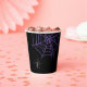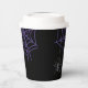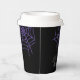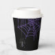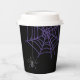 Eine Designer-Tasse aus schwarzem Papier mit Imitaten sequenzierte lila Spinnennetze und Imitate beattelte Silberspinne. Ideal für Ihr Halloween-Party! Designer Halloween-Papier-Tasse, halloween Papier-Tasse, Spinnennetz, schwarze Papiertasse, lila und schwarz, Spinne, halloween Spinne, schwarz
