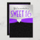 Lila und schwarzes Blumendamast-Diamant-Herz Einladung