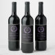 Elegantes, mit Monogramm Weinetikett. Lavendel lila auf schwarzen Lorbeerkranz mit einem anpassbaren Monogramm. Der schwarze Hintergrund ist veränderbar.