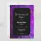 Eine Party Einladung mit lila gemalten Rahmen für das Abendessen in Schwarz.