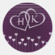 Schöner, dunkel lila Retro-Aufkleber mit silberfarbenen Monogramm-Herzrahmen. Sie können ganz einfach die süßen Monogramme in die Herzen einfügen und auch die Hintergrundfarbe ändern, wenn Sie möchten. Ideal für den Valentinstag, Hochzeiten und andere besondere Anlass! Karo auch andere Golden Monogram Heart Designs!