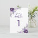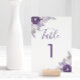 Diese Tischnummer-Karte hat helle und dunkle lila Aquarellfarben Blume, Blätter und silberne Blumenelemente. Die Kopie kann vollständig bearbeitet werden. Sie können auch den Schriftart ändern. Diese Karte verfügt über passende Einladungen, Umschläge, Etiketten und Briefmarke. Machen Sie alle Ihre Hochzeitsartikel koordinieren!