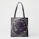 Dunkelviolette Blumen mit silberfarbenem Blattwerk, in einem silbergotischen Rahmen, auf schwarzem Hintergrund, schaffen eine wunderschöne Totentasche mit ausgesprochen gotischer Ästhetik. Wunderschön, dunkel romantisch, ideal für Zuhause, Büro, Schule oder Shopping.