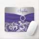 Dieses elegante Schauen lila und silbernes Damast mousepad hat eine zusammenpassende Imitatband- und -kristallbrosche. Fertigen Sie es mit Ihrem eigenen Namen, Monogramm oder anderem Text besonders an.