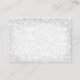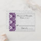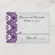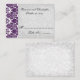 Dieses lila und silberne Design mit seinem verzierten Drehbuch und Silberspitzenakzent macht eine hübsche Platzkarte für Ihre Hochzeitsfeier. Fügen Sie Ihre Namen und das Hochzeitdatum hinzu, und schreiben Sie den Namen und die Tischnummer Ihres Gastes auf jeder Karte.