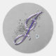 Lila und Silver Glitzer Extravagante Script Monogr Runder Aufkleber