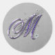 Lila und Silver Glitzer Extravagante Script Monogr Runder Aufkleber