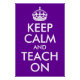 Anpassbare lila-weiße Textgestaltung "Behalt Calm and Teach On". Sie können Ihre eigene Parodie erstellen und die Formulierung ändern.