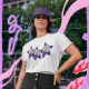 Lila und weiße Blume für Frauen kombinieren T-Shirt