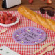Lila und weiße Blüten und Blätter Muttertag Pappteller