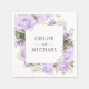 Ein schönes lila-weißes Blumenmuster bildet einen quadratischen Rahmen auf dieser Papierserviette. Die Namen der Brautpaare sind in der Mitte enthalten. Sehr raffinierte Wahl für eine Frühjahr- oder Sommerhochzeit. Dieses Produkt ist Teil der Violette Kollektion, wo Sie viele Produkte für Ihre Hochzeitsfeier, Empfang oder Einladung Paket finden.