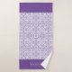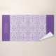 Lila und weiße Damast-Muster und geschliffene Ränder Bath Handtuch Set. Das Badetuch weist ein elegantes, lila-weißes Damastmuster auf, und die kurzen Bänder sind mit geschliffenen Kanten lila. Es gibt auch einen Rahmen mit Ihrem Familiennamen. Das Handtuch zeigt einen geschossenen Rahmen, während das Schlagtuch in der Mitte mit einem Damast-Rahmen und dem Monogramm lila ist. Sie können es mit Ihrem Familiennamen und Monogramm personalisieren.