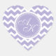 Lila und weiße Retro-Zickzack Monogramm Herz-Aufkleber