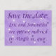 Auf Save the Date Postkarten ist ein Gemälde lila und weißer Sterne auf einem blended lavender Hintergrund gedruckt. Einfach die Namen der Braut und des Bräutigams und das Hochzeitdatum auf dem Template Formular anpassen. Durchsuchen der passenden Stichprobe: