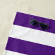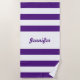 Lounge am Strand, Pool oder auf dem Boot im Stil mit diesem schicken lila-weiß gestreiften Strandtuch mit Ihrem Namen in modernen Skripttext über einem dicken weißen Akzent Streifen. Viel Spaß beim Ändern des aquamarinen Textes und der Stripfarben, um Ihren Stil noch besser anzupassen.