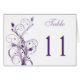 Diese lila und weiße Tischnummer-Karte passt zu der unten abgebildeten Hochzeitseinladung.