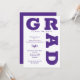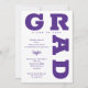 GRAD in fett lila Schriftzeichen rund um die Ränder dieser weißen Hintergrund Graduation Party Einladungen. SIEHE GANZE SAMMLUNG von vorgefertigten Farbkombinationen, Papier-Teller, Servietten, Gunst-Boxen und Graduierungsparty Einladungen in unserem Shop.