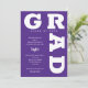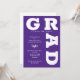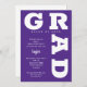 GRAD in fett-weißen Schriftzeichen Kurven rund um die Kanten dieser lila Hintergrund Graduation Party Einladungen. SIEHE GANZE SAMMLUNG von vorgefertigten Farbkombinationen, Papier-Teller, Servietten, Gunst-Boxen und Graduierungsparty Einladungen in unserem Shop.