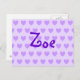 Hübsches lila Herzdesign für Zoe. Ein niedliches Geschenk für Mädchen.