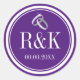 Stilvolle lila und weiße Monogramm Gastgeschenk Hochzeit Aufkleber. Niedliches Herz mit mit Monogramm Namen Initialen von Braut und Bräutigam plus Heiratsdatum. Personalisiert danke Ihnen Aufkleber, Save the Date Etikett, Umschlag-Dichtungen oder bevorzugen Siegel. Elegante Typografie für Initialen von Braut und Bräutigam. Chic Design / extravagantes Design. Anpassbare Hintergrundfarbe. Romantische Liebe Thema Design mit verstrichenen Hochzeitsringen. Interlock / Interlock Ring Icon für die Hochzeit.