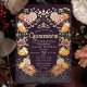Feiern Sie Ihre Quinceañera in einem zauberhaften Garten! Diese Einladung enthält einen üppigen Rahmen an lila und orangefarbenen Blumen mit echten Folienakzenten vor einem lila Hintergrund, der Ihrem besonderen Tag eine Touch Magie verleiht. Bestellen & Set den Ton für eine Feier so schön wie Sie sind!