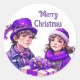 Adorable Kinder, Junge und Mädchen, Bruder und Schwester in lila frohen Weihnachtsaufklebern.