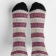Diese hübschen Imitate Strick Holiday Socken haben ein Muster von Lavendel Retro-Stil Schneeflocken in verschiedenen Größen. Die Schneeflocken werden auf abwechselnd dunkelvioletten und weißen breiten Streifen platziert, wobei die Segmente durch dünne Streifen voneinander getrennt werden. Hübsch für die Weihnachtszeit oder den ganzen Winter lang! *Bitte beachten Sie, dass das Muster auf dem Stoff aufgedruckt ist und nicht in ihn eingewoben ist.