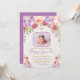 Elegante Taufe / Taufen / Kommunion Einladung mit lila / lavender Aquarell Blume und Imitate Goldschrift.