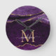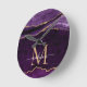 Lila Violett Gold Agate Geode Glitzer Monogramm Runde Wanduhr