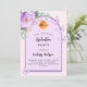 Rosa Hintergrundfarbe mit lila und violettem Bogen. Die Einrichtung besteht aus Blumen, Rose, Blume, grünem Eukalyptusgrün und Schmetterlingen. Personalisieren und fügen Sie einen Namen und Party-Details hinzu. Zurück: Rosa Hintergrundfarbe rot.