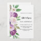 Violett, lavendelfarbener Hintergrund und Bogenrahmen. Die Einrichtung ist mit violetten und lila Blume und Pflanzen in Aquarellen gestaltet. Personalisieren Sie Ihren Namen und Ihre Party-Daten und fügen Sie diese hinzu.