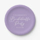 Diese reizende lila violette Henparty-Papierplatte zeigt klassische weiße Schrift für eine Braut, die mit ihren Brautjungfern ein hochklassiges Event feiert. Schicke, minimalistische pastellviolette Henparty-Dekoration.