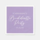 Diese reizende lila violette Serviette für die Henparty aus Papier zeigt klassische weiße Schrift für eine Braut, die eine gehobene Veranstaltung mit ihren Brautjungfern haben wird. Chic, minimalistischer pastellvioletter Henparty-Schmuck.
