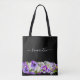 Ein eleganter schwarzer Hintergrund und eine Grenze von violetten, lavendelfarbenen, lila und weißen Stiefmütterchen in Aquarellfarben. Personalisieren Sie Ihren Namen und fügen Sie ihn hinzu. Der Name ist mit einem modernen handgeschriebenen Stilskript geschrieben. Weiße Buchstaben. Um die Swashes behalten, löschen Sie nur den Beispielnamen, verließ die Leerzeichen oder Emoji's vor und nach dem Namen