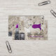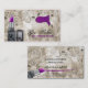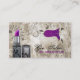 Fördern Sie Ihren Make-upkünstler oder Wellness-Center und Salon mit diesem mutigen Lila mit Vintager Blumenhintergrundgeschäftskarte. Diese Cosmetologistgeschäftskarte kennzeichnet einen eleganten strukturierten Alternhintergrund mit BlumenWirbel und blüht. Der Vordergrund hat ein stilvolles erhöhtes graues und silbernes Lippenstiftblumenrohr mit dem Lippenstift, der teilweise aus dem Rohr heraus haftet. Eine der Blumen balanciert die Karte, indem es das gleiche Rot wie im Lippenstift anzeigt. Diese Visitenkarte ist elegant und mit irgendeinem altem stilvollem Aufflackern nobel. Entwürfe PAM ©2013.