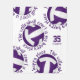 Dieses sportliche Volleyballspiel mit dem Thema Fleecedecke zeigt 5 zufällig arrangierte lila-weiße Volleybälle mit dem Text "Der Volleyballplatz ist mein Happy Place" in lila Umrundung jedes Volleyballs in einem lustigen typografischen Schriftart, alles auf weißem Hintergrund - ihr Name und ihre Trikotnummer sind individuell einstellbar - von katz_d_zynes