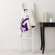 Das Volleyball-Fliegentuch dieser Mädchenin ist mit 5 zufällig arrangierten lila-weißen Volleybällen mit dem Text "Der Volleyballplatz ist mein glücklicher Platz" in lila Umkreisung jedes Volleyballs in einem spielerischen typografischen Schriftart ausgestattet, alles auf weißem Hintergrund - ihr Name und die Jerseynummer sind anpassbar - von katz_d_zynes