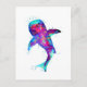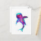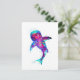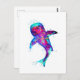 traditionelle Aquarellkunst eines sehr bunten Riesenhais in surrealblau und lila Farben auf einer Postkarte