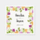 Die Papierservietten in 2 Größen sind mit lila und gelben Blüten in elegantem Wasser, grünen Blättern, Ihren Namen und dem Hochzeitstag in schicken Schriften versehen. Ändern Sie die Farbe hinter dem Blattwerk in eine beliebige Farbe, um Ihr Hochzeitsthema oder Party zu bestimmen. **TIPP: Klicken Sie auf die Schaltfläche CUSTOMIZE (oder passen Sie den Link bei der Personalisierung an), um Informationen hinzuzufügen, zu löschen, zu verschieben und auszurichten, die Schriftart, die Schriftart-Farben und sogar die Hintergrundfarbe zu ändern. KOORDINIERUNG der in unserem Geschäft verfügbaren Artikel —> http://bit.ly/2SMa4jO <—