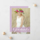 Mit dieser benutzerdefinierbaren Abschluss-Karte können Sie Ihren Abschluss bei Familie und Freunden bekannt geben. Es zeichnet sich durch moderne weiße Kalligraphie auf einem lila Aquarellplatz aus. Personalisieren Sie diese Kalligrafie-Abschluss-Ankündigungskarte, indem Sie Ihr Foto, Ihren Namen und Ihren Schulnamen eingeben. Diese Foto Abschluss-Ankündigungskarte ist ideal für High School oder Uni-Abschlüsse.