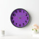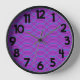 Diese Wanduhr hat ein Boho-Design von lila und türkisfarbenen Wellen auf einem Lichtfeld lila.