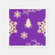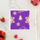 Ein buntes Weihnachtsdekor mit Schneeflocken, Weihnachtsbäumen und Wirbel, verstreut über einen festlichen lila Hintergrund.