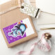 Lila Weihnachts-Rechteck Aufkleber Pinguin Skater.