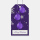 Tag deine Weihnachtsgeschenke für die Empfänger dieser Weihnachtszeit mit einem Lila Weihnachtsgeschenktag. Das Geschenktag-Design bietet ein Trio von hängenden Weihnachtsschmuck mit fallenden Schneeflocken und einem dunklen lila Hintergrund. Mit diesem Design sind auch zusätzliche Geschenk- und Urlaubsartikel erhältlich.