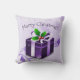 Fügen Sie Ihrem Zuhause mit diesem festlichen Lila Weihnachtsgeschenk-Kissen ein paar Feiertage Beifall hinzu. Das Kissendesign besticht durch ein lebendiges lila Weihnachtsgeschenk, das mit heiligen Beeren und abfallenden Schneeflocken geschmückt ist. Mit diesem Design sind auch zusätzliche Geschenk- und Urlaubsartikel erhältlich.